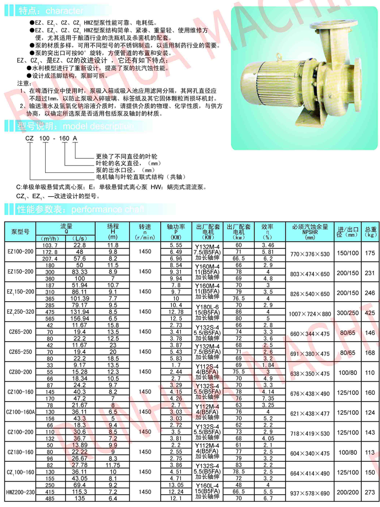 EZ、EZ1、CZ、CZ1 HWZ型直聯式單級離心泵